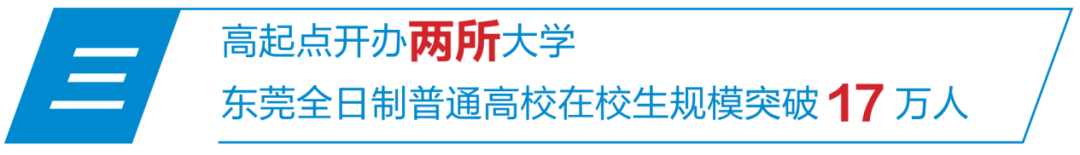 立足粤港澳大湾区核心节点城市战略定位,“十四五”期间东莞加力推进高等教育取得突破性进展,大湾区大学、香港城市大学(东莞)高起点开办、招生取得“开门红”,全市全日制普通高校在校生规模突破17万人,高水平高校集群加速成型。