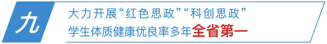 实施中小学生“全员体育”运动计划,中小学生体质健康抽测优良率连续多年全省第一;推动全市义务教育学校创新开展“每周一歌”活动,覆盖省内外约300万学生;成立全省首个中小学劳动教育研究团体,构建“五有”劳动教育体系,学生在劳动实践中习劳知恩、增长本领。