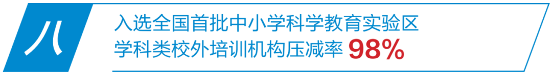 率先推动106所义务教育学校每周开展半天校外(特色)活动,设立义务教育学校每周三为“无作业日”;累计压减学科类校外培训机构1274家,压减率达98%,压减数量和压减率排在全国全省前列。