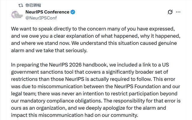 在这里,笔者举个小例子,3月25日还声称要“配合美国制裁”,禁止接收中国论文的NeurIPS(神经信息处理系统大会)在3月27日“光速滑跪”,宣布取消原定政策,和之前一样接受中国相关科学机构、个人和单位的投稿(见下图)。