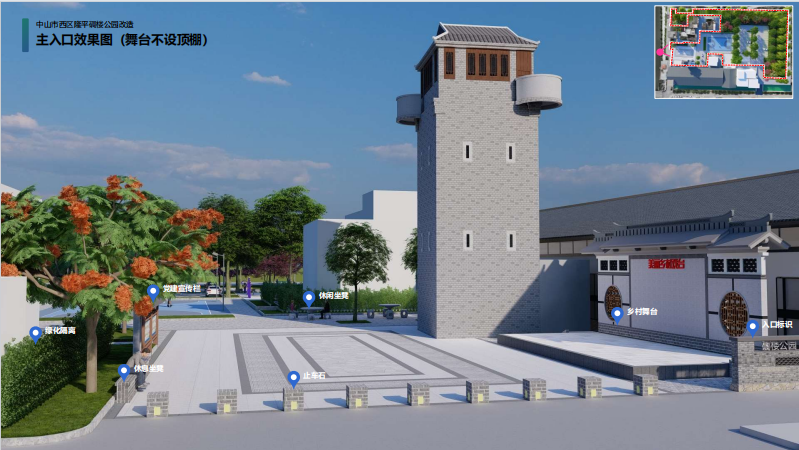 隆平社区深挖百年碉楼的文化底蕴,以提升居民文化素养、丰富公共生活、促进健康生活为目标,建设以碉楼为核心的生态文化公园。该项目占地约7000平方米,总投资约300万元,通过对现有场地进行科学规划与整体升级,合理布局文化舞台、休闲区、运动区与停车区,着力打造集休闲娱乐、健身运动与文化传承于一体的多功能公共空间。